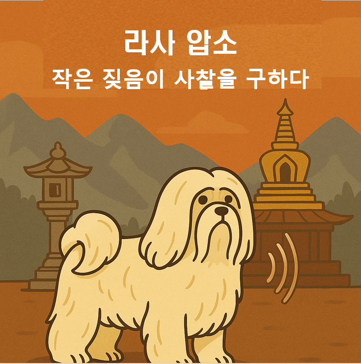 히말라야 고원의 차가운 바람이 불어오는 어느 밤, 티베트의 한 사찰은 고요했습니다. 승려들은 명상에 잠겨 있었고, 등불만이 희미하게 흔들리며 경내를 비추고 있었습니다. 그러나, 그 적막 속에도 작은 생명 하나가 잠들지 않고 있었습니다. 바로 라사 압소(Lhasa Apso), 작은 체구에 긴 털을 늘어뜨린 사찰의 수호견이었습니다.